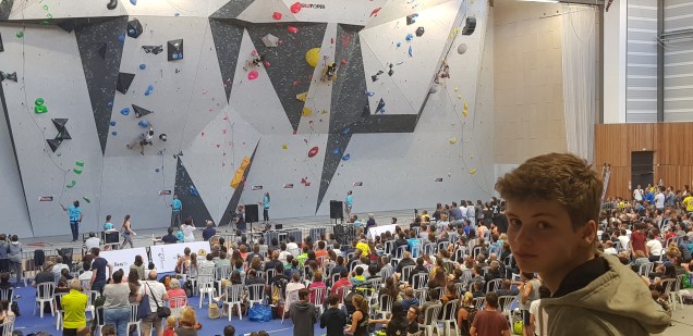 Ce week-end se tenait à Marseille les championnats de France jeunes de difficulté. L’objectif d’une saison d’entrainement pour Victor et ses premiers pas dans la cour des grands. L’occasion de découvrir un mur fabuleux, aux portes des calanques. Le samedi était dédié aux voies de qualifications et… à une longue attente. Inscrit en 42ème sur 65, ce n’est qu’en milieu d’après-midi qu’il a pu s’élancer et toper ses deux voies. Objectif atteint ! En route pour la demi-finale dimanche matin.
