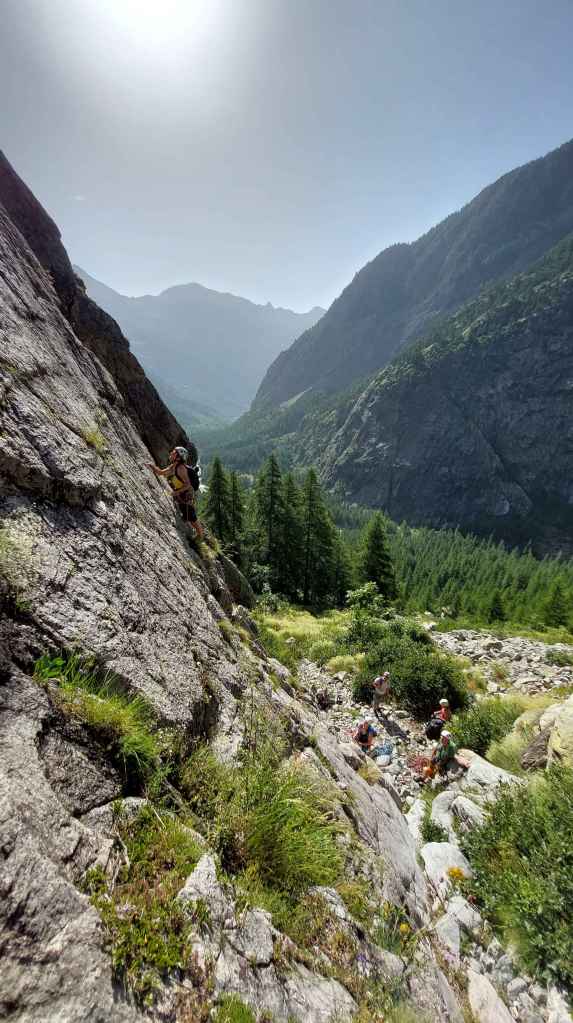 - Grande voie : Fissure d’Ailefroide 280 m 5b max (Camille, Christophe, Anthony)
