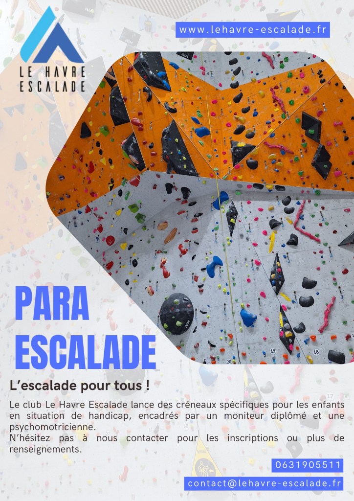 Le créneau sera encadré par une psychomotricienne (Zélie Lemoine) ainsi qu’un moniteur diplômé en escalade et se tiendra le Lundi de 18h à 19h30 au gymnase Lavoisier.
