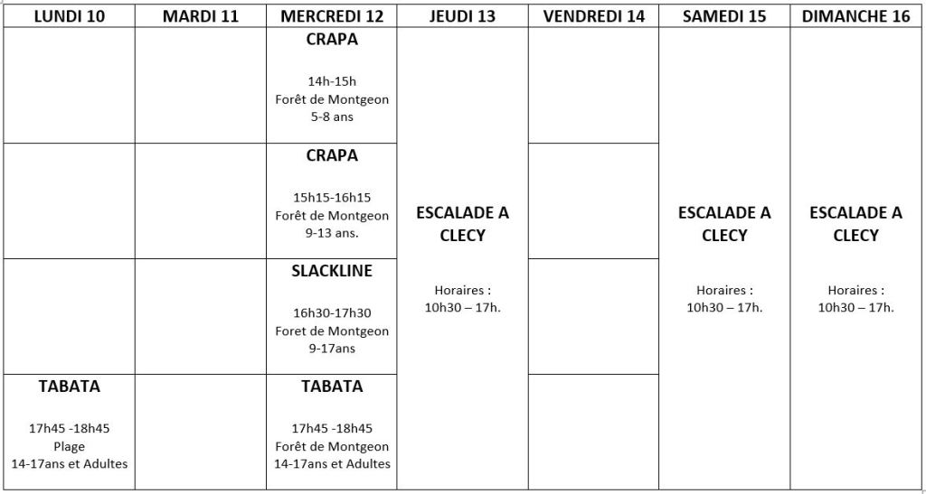 - Du 14 au 27 Juin 2021 : réinscriptions pour les adhérents du club. Vous recevrez directement par mail la fiche à nous renvoyer pour réserver votre séance. (Le mail a été envoyé, si vous ne l’avez pas reçu, contactez Juliette : eacjulietterichou@gmail.com)